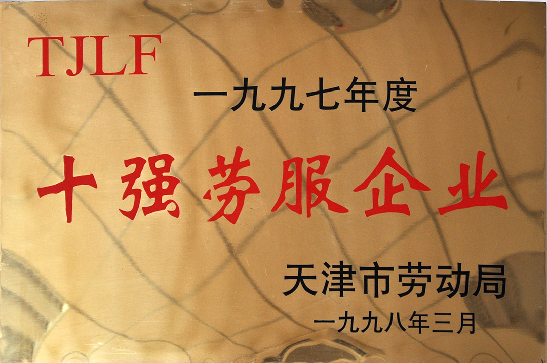 1998年天津市勞動(dòng)局頒發(fā)十強勞服企業(yè)