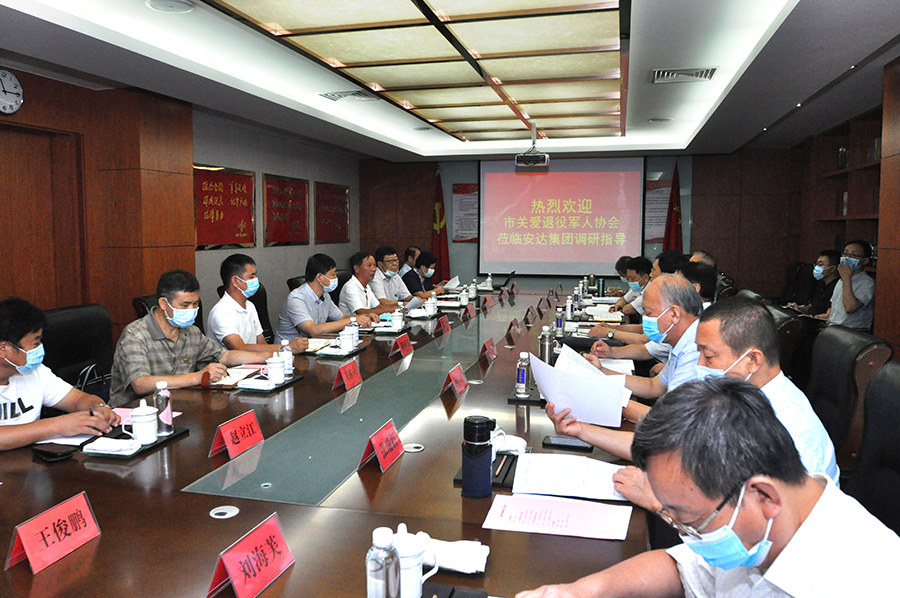 8月20日,天津市關(guān)愛(ài)退役軍人協(xié)會(huì )會(huì )長(cháng)茍利軍帶隊到東麗區調研,總結東麗區“退役軍人之家”建設經(jīng)驗,研究提升完善“退役軍人之家”建設,并調研退役軍人自主創(chuàng )業(yè)的成功企業(yè)代表—安達集團。市關(guān)愛(ài)退役軍人協(xié)會(huì )副會(huì )長(cháng)于秋軍、穆守俊、何江、朱清相、張瑞新,市關(guān)愛(ài)退役軍人協(xié)會(huì )秘書(shū)長(cháng)宋燕鳴,副秘書(shū)長(cháng)劉海芙、張健參加。副區長(cháng)張慶巖,區退役軍人事務(wù)局局長(cháng)路四江,區關(guān)愛(ài)退役軍人協(xié)會(huì )會(huì )長(cháng)陳文華陪同。安達集團黨委書(shū)記、董事長(cháng)崔洪金參加了調研活動(dòng)。