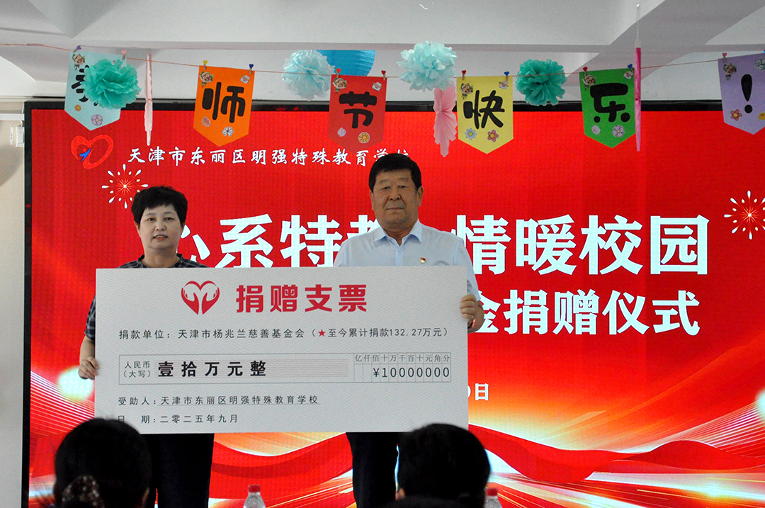 在全國第 41 個(gè)教師節來(lái)臨之際,東麗區明強特殊教育學(xué)校舉辦 “以教育家精神鑄魂強師,譜寫(xiě)教育強國建設華章” 主題慶?;顒?dòng)。安達集團黨委書(shū)記、董事長(cháng)崔洪金作為學(xué)校名譽(yù)校長(cháng)受邀出席,不僅現場(chǎng)發(fā)表重要講話(huà)致敬特教教師,更以天津市楊兆蘭慈善基金會(huì )名義向學(xué)校捐款 10 萬(wàn)元,專(zhuān)項用于改善教學(xué)設施、提升康復條件及賦能教師發(fā)展,用實(shí)際行動(dòng)為特殊教育事業(yè)注入溫暖力量。